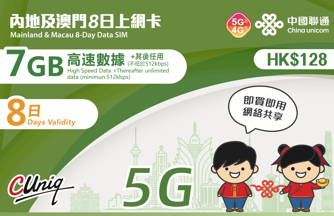 ESIM_内地及澳門8日上網卡$128(ESIM_Mainland &Macau 8-Day Data SIM $128 (7GB FUP)